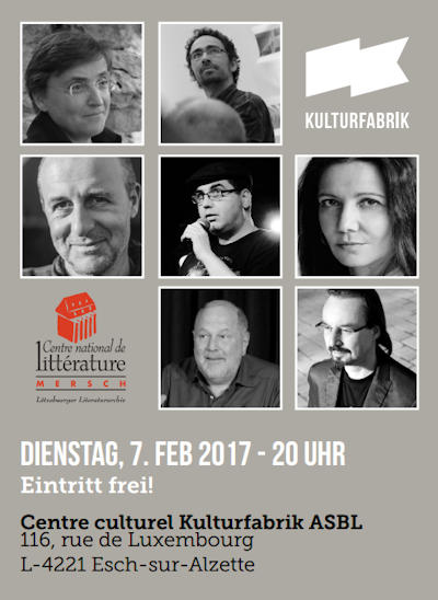 Seit 2010 ist es in der Kulturfabrik Tradition, parallel zu den anderen Veranstaltungen literarischen Charakters einen Leseabend ganz im Zeichen der literarischen Textproduktion made in Luxembourg zu veranstalten. Dabei lesen jeweils ein halbes Dutzend veröffentlichter Schriftsteller und Schriftstellerinnen im großen Saal der Kulturfabrik aus ihren Werken vor.