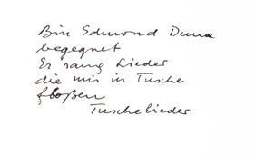 und schrieb selbst lyrische Begleit- (oder Ursprungs?-) texte zu seinen Bildern. Ein Maler, dessen Werk immer auch die Poesie begleitet hat, dessen Werk immer auch Poesie geschaffen hat.