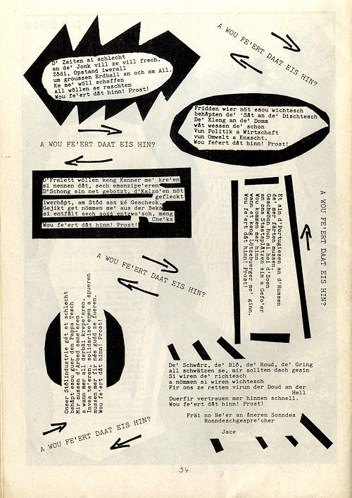 Tëschent 1981 an 1982 si fënnef Nummere vun Zoustänn: Zeitung fir fräi Expressioun an der Stad opgrond vun enger Initiativ vun e puer Kolleegen erauskomm. Den Ënnertitel Zeitung fir fräi Expressioun gëtt d’Linn vir: „Hier kann also jeder seine Beziehung zum Journalismus, seine Liebe zur Poesie, seine Kulturvorstellungen frei entfalten.“ D’Redaktioun erkläert mat hirer Zäitschrëft en „Zufluchtsarchipel der vorurteilslosen, zwischenmenschlichen Kommunikation zu schaffen“ (Nr. 1/1981, S. 2).