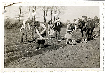 Die Fotografie stammt aus dem Nachlass des 2013 verstorbenen Journalisten und Autors Nic Weber, den das CNL als Schenkung erhielt und der nun die Signatur L-395 trägt. Die Aufnahme zeigt eine Gruppe von sechs Personen beim Kartoffelpflanzen auf einem Acker, während ein Pflüger (am rechten Bildrand) mithilfe eines Ardenner Pferdes Furchen in das Erdreich zieht. Man erkennt auf dem Bild zwei Personengruppen: 1) drei Männer und eine Frau in ländlicher Arbeitskleidung, die gebückt ihrer Beschäftigung nachgehen; 2) in der Bildmitte und mit direktem Blick in die Kamera, ein jüngeres Paar in legerer Stadtkleidung, das augenscheinlich nicht in diese bäuerliche Alltagswelt passt. Die jungen Menschen, deren Präsenz auf dem Acker offensichtlich Hauptthema des Bildes ist, sind Nic Weber und seine Frau Maria (genannt Miep) Roselle. Das Foto entstand wohl im zeitlichen Umfeld ihrer kirchlichen Trauung in der Kathedrale von Luxemburg im April 1952 und dokumentiert einen Besuch bei den Verwandten des Bräutigams im Ösling. Dessen Vater ist im Vordergrund zu erkennen, seine Mutter war wenige Jahre zuvor verstorben.